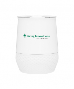 12 oz double wall 18/8 stainless steel thermal tumbler with copper vacuum insulation, push-on lid, matching swivel closure, and removable silicone base.