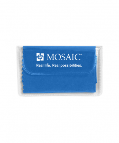 6" W x 6" H Cloth. 220 Gram Microfiber. Great For Cleaning Glasses And Device Screens. Complies with Prop 65. 4" W x 2.25" H